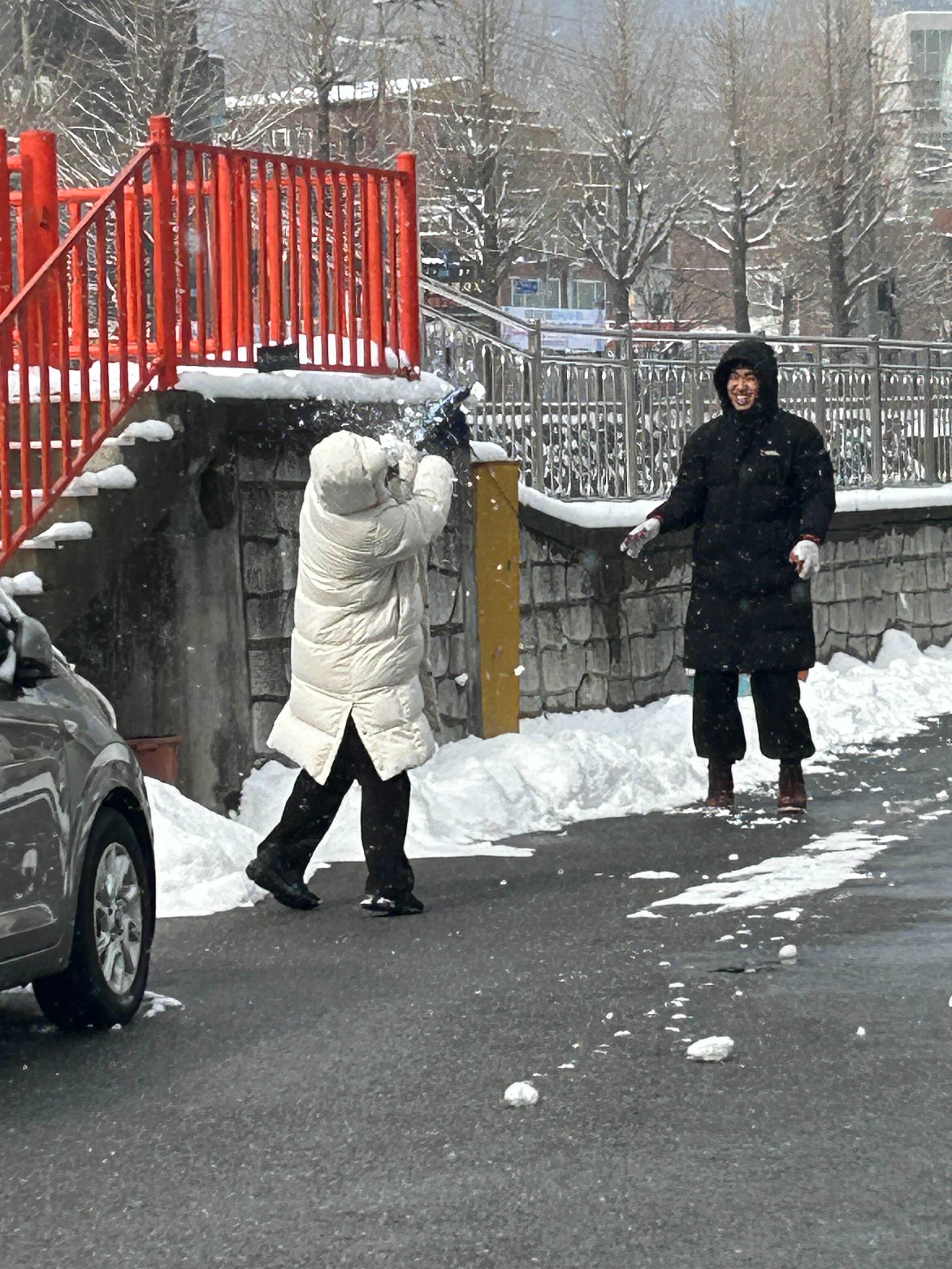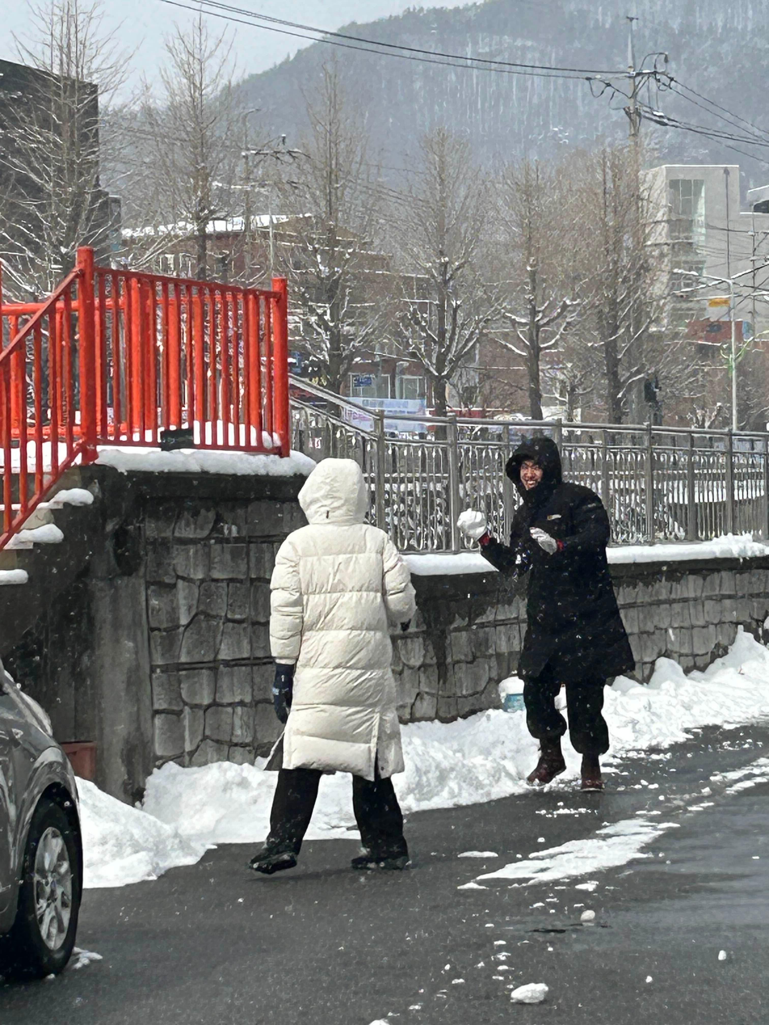 일어나자마자 밖에 눈싸움 하러